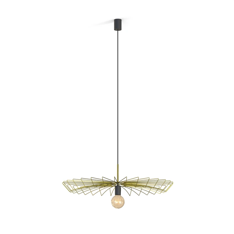 Die Pendelleuchte Umbrella in flacher Form, gold, vereint modernes Design mit hochwertiger Verarbeitung aus Stahl. Die elegante goldene Farbgebung verleiht jedem Raum, sei es Wohnzimmer oder Esszimmer, eine luxuriöse Note. Diese Leuchte ist nicht nur ein Blickfang, sondern auch ein Beispiel für europäische Handwerkskunst, die in jedem Detail spürbar ist.