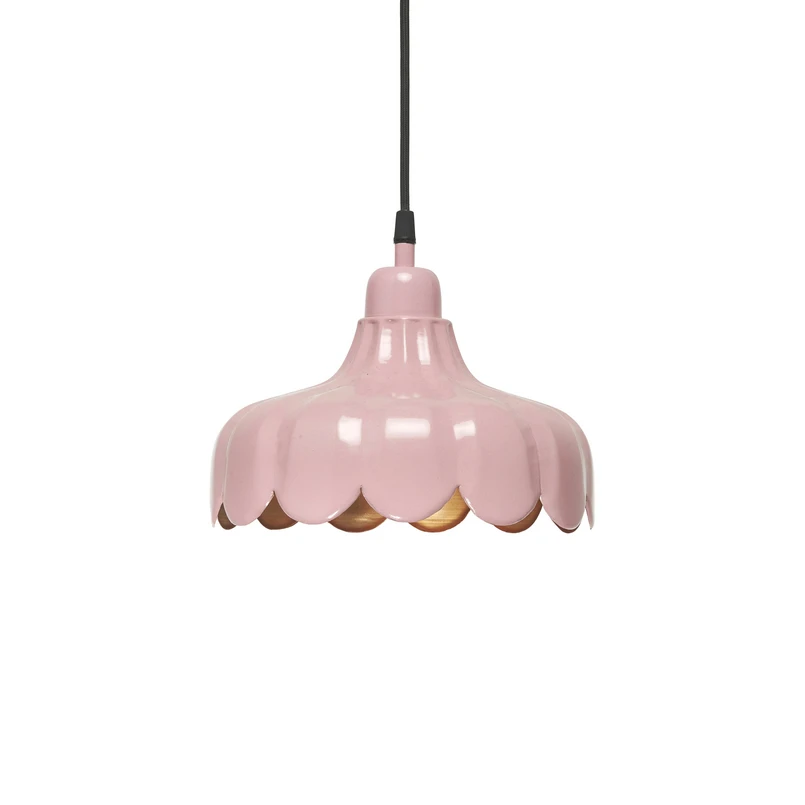 Hängeleuchte Wells mit Metallschirm in Blumen-Optik, mit Stecker ausgestattet
