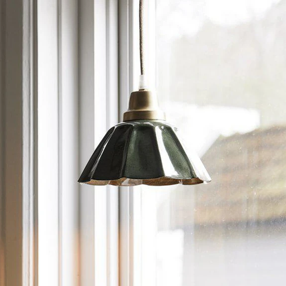 Der runde, unten offene Lampenschirm der Hängeleuchte Ester aus Eisen ist mit einem farbig emaillierten Finish versehen. Kombiniert mit dem messingfarbenen Detail oberhalb es Lampenschirms, ergibt sich ein Lichtspender mit ansprechendem Vintage-Charme. Die Stromversorgung erfolgt direkt über eine Steckdose; hierzu ist die Hängelampe Ester mit einem Steckerkabel samt Befestigungshaken ausgestattet.