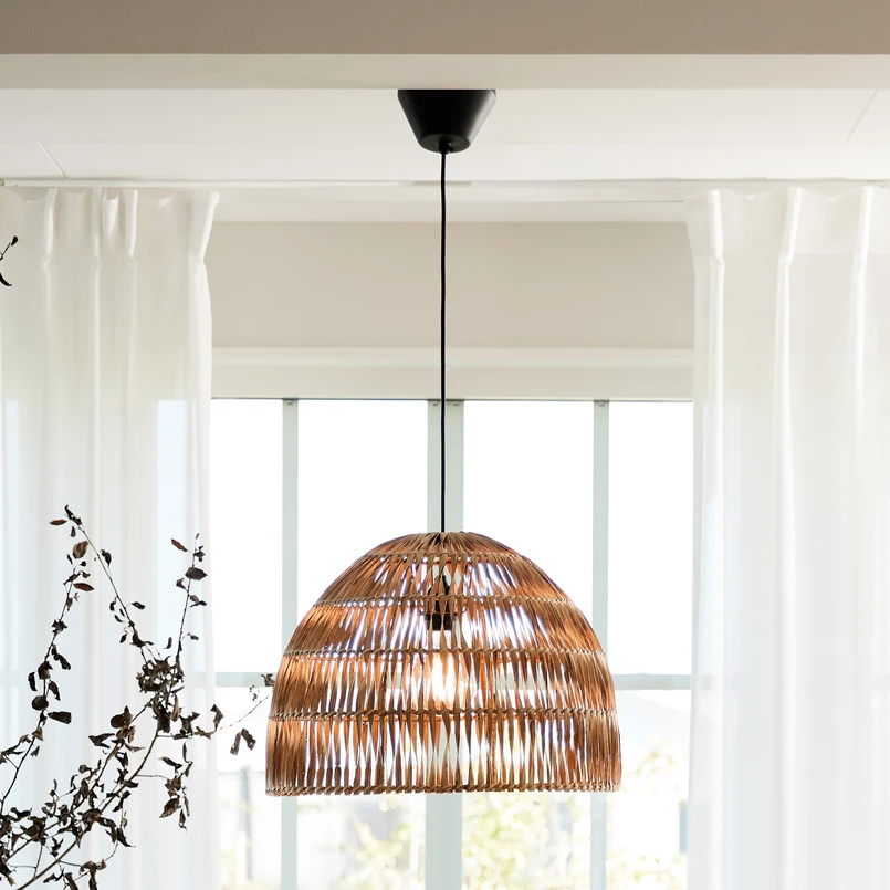 Die Hängeleuchte Lace aus zartem, gedrehtem Rattan ist eine handgefertigte dekorative Leuchte, die eine gemütliche Atmosphäre schafft und einen auffälligen Schatten wirft, wenn sie leuchtet. Sie ist für den Innenbereich mit einem 1,2 m langen schwarzen Kabel zur Aufhängung an einem Haken ausgestattet. Das natürliche Material kann sich in der Farbe verändern, jeder Schirm ist handgefertigt und es kann zu kleinen Größenabweichungen kommen.