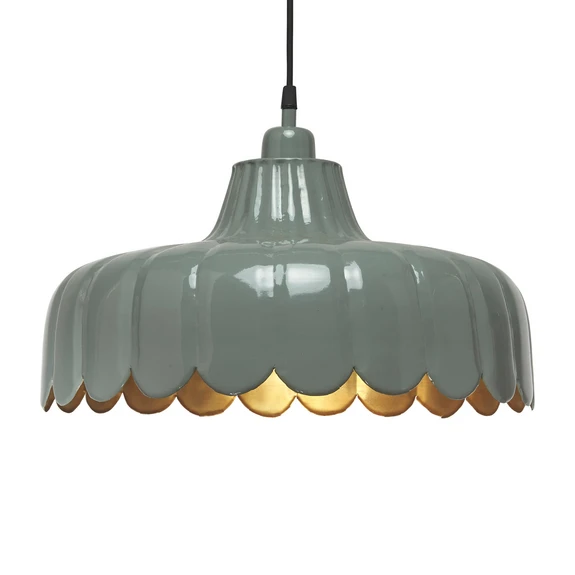 Die Hängeleuchte Wells sticht durch ihre besondere Gestaltung in Blumen-Optik ins Auge. Sie eignet sich ideal zur Beleuchtung des Wohn- oder Esszimmertisches oder einer Küchentheke. Der handgefertigte Schirm besteht aus Metall und verfügt über eine goldene Innenseite, die das Licht reflektiert und für einen warmen Schimmer sorgt. Durch das dekorative Design ist Wells auch im ausgeschalteten Zustand ein schöner Blickfang im Wohnbereich. Das Leuchtmittel ist nicht inklusive und kann frei gewählt werden.