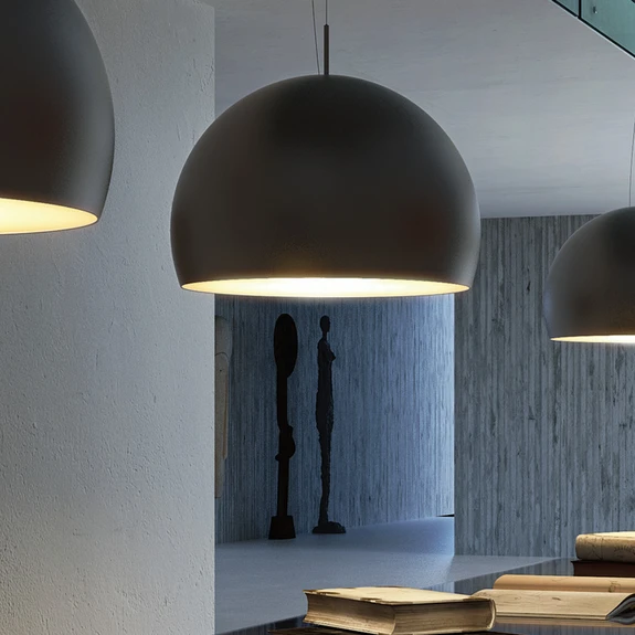 In einem zeitgemäßen Design präsentiert sich die Hängeleuchte Biluna S5. Ihr Schirm hat die Form einer Halbkugel. Das äußere Gehäuse ist aus lackiertem Metall gefertigt und die innere Reflektorschale aus opalem, thermogeformtem Acryl. Die helle Innenseite unterstützt eine effektive Beleuchtung des unterhalb gelegenen Bereichs. Biluna eignet sich nicht nur hervorragend für den privaten Wohnraum, sondern auch für Hotellerie und Gastronomie, wo die Pendelleuchte beispielsweise in einer Reihe über einer langen Theke ihren Platz findet. Im Lampenschirm sind drei E27-Fassungen verbaut, die mit den über das Zubehör erhältlichen Lampen bestückt werde können.