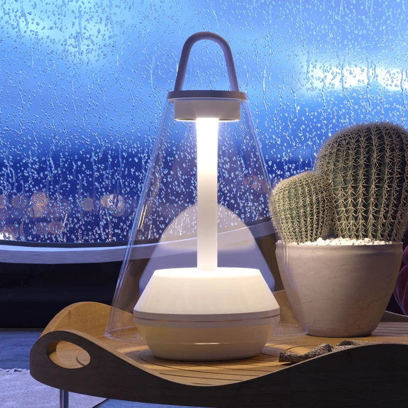 Für den Innen- und Außenbereich - LED-Tischleuchte Shuttle mit mundgeblasenem Glasschirm