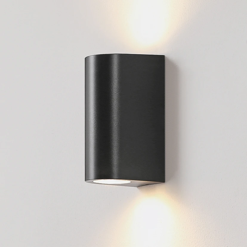 Irfan präsentiert sich in einem eher simplen Design. Ihr Körper ist abgerundet und hat sowohl an der Ober- als auch an der Unterseite eine Fassung für ein GU10-Leuchtmittel. Durch die Öffnungen oben und verbreitet sich das generierte Licht angenehm an der Wand. Die Außenwandlampe Irfan besitzt die Schutzklasse IP44 und ist aus diesem Grund nachweislich gegen Spritzwasser geschützt. Kombiniert man sie mit weiteren Leuchten ihrer Serie entsteht ein stimmiges Ambiente.