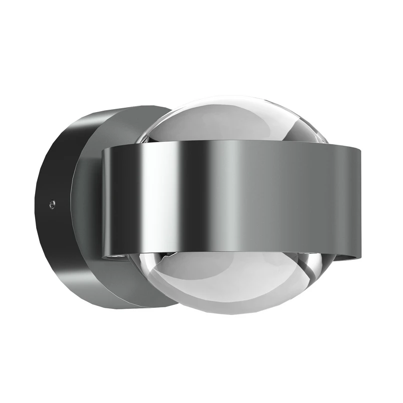 Die Wandleuchte Puk Mini Wall von Top Light ist ein bekannter Klassiker, der trotz seines schlichten Designs zu punkten weiß. Der hochwertige Körper aus Metall ist rund geformt und oben und unten mit jeweils einer klaren Linse aus Glas bestückt. Typisch für diese Linsen ist ihr scharf abgegrenzter Lichtkegel, der sich auf der Wand abzeichnet. Dadurch entsteht ein nach oben und nach unten gerichtetes Licht, das eine angenehme Wohnatmosphäre schafft und völlig blendfrei für ein gutes Raumlicht sorgt. Dank der akzentuierten und gezielten Beleuchtung wird der Fokus des Betrachters auf einen ausgewählten Bereich gelenkt und kann so einem individuellen Raumkonzept gerecht werden.
