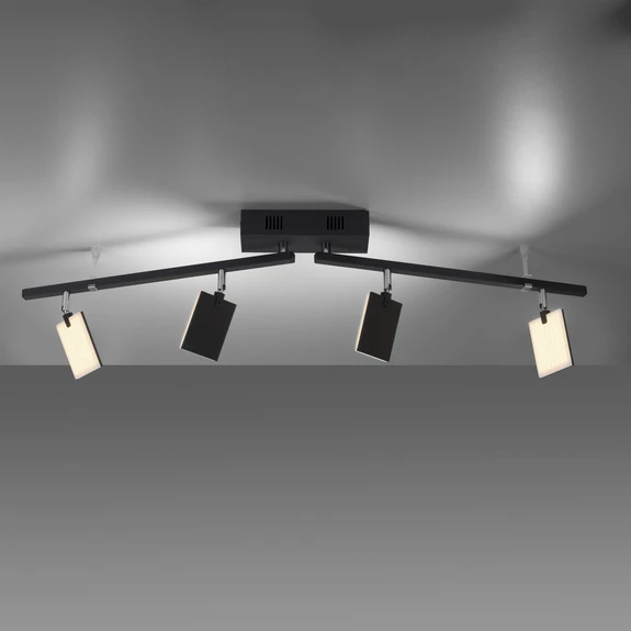 LED-Deckenleuchte PURE Mira mit vier ausrichtbaren Lichtelementen, Helligkeit und Farbtemperatur über Fernbedienung regelbar