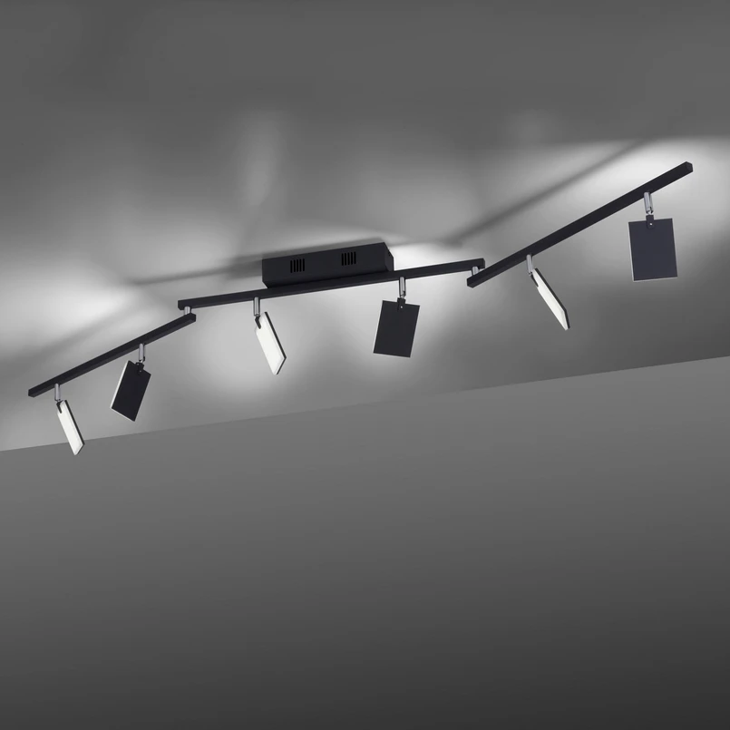 LED-Deckenleuchte PURE Mira mit sechs ausrichtbaren Lichtelementen, Helligkeit und Farbtemperatur über Fernbedienung regelbar