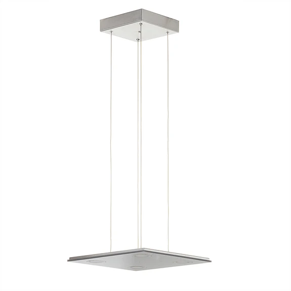 Die LED-Hängeleuchte Pano ist mit vier LEDs ausgestattet, die in eine Edelstahlplatte mit Acrylverkleidung eingelassen sind. Die Platte ist quadratisch, in ihrer Mitte befindet sich ein kleiner blauer Punkt, der das ganz besondere Extra dieser Hängeleuchte darstellt: ein IR-Schalter, mit dem man die Leuchte dimmen und ein- und ausschalten kann. Die warmweißen LEDs prädestinieren die Hängeleuchte für den Einsatz im Wohn- oder Esszimmer, wo es um gemütliches Beisammensein am Tisch oder auf dem Sofa geht.