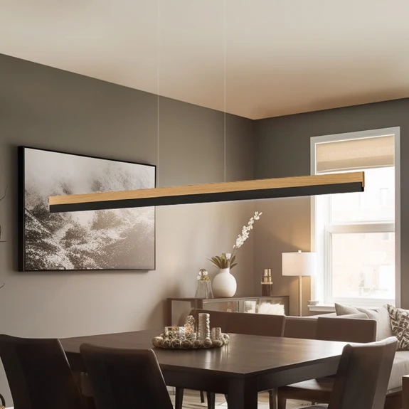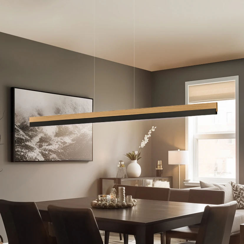 Quitani LED-Hängelampe Keijo, schwarz/eiche, Länge 143 cm