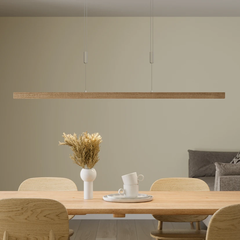Dimmbare LED-Balkenpendellampe Nora aus hochwertigem Eichenholz - CRI > 90