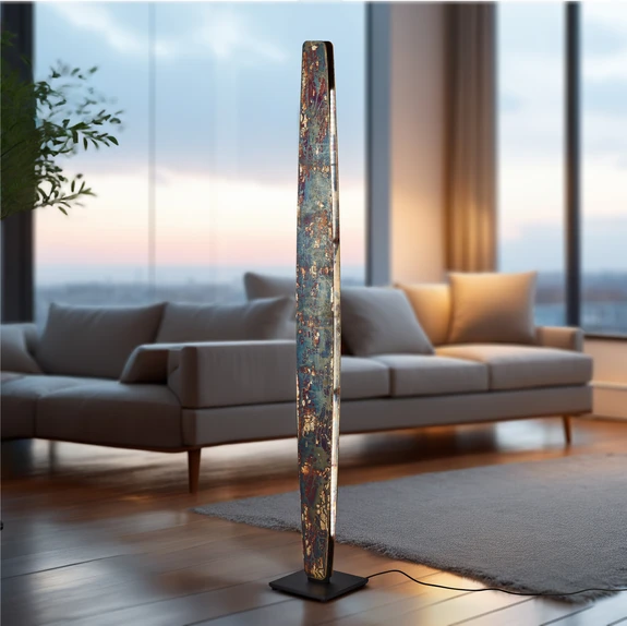 Diese Bodenleuchte passt einfach exzellent in jede Innenausstattung und setzt mit ihrem auffallenden Design wertvolle Akzente. Ihr Körper besteht aus goldenem Schlagmetall und entstammt aufwändiger Handarbeit. Mittels eines Schalters können Sie die Stehlampe einfach an- oder ausschalten. Darüber hinaus besitzt Persida eine Memory-Funktion, durch die vorher eingestellte Licht-Modi beim erneuten Einschalten der Leuchte wieder abrufen werden können. Aufgrund des warmweißen Lichts wird Ihr Wohnbereich in eine tolle Atmosphäre getaucht. Die Leuchte ist ganz nach Ihrer Stimmung dimmbar. Holen Sie sich mit dieser Lampe Quitani-Markenqualität in Ihre vier Wände. Die Stehleuchte ist nicht nur eine exzellente Lichtquelle, sondern auch ein tolles Dekoelement.