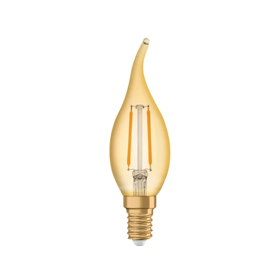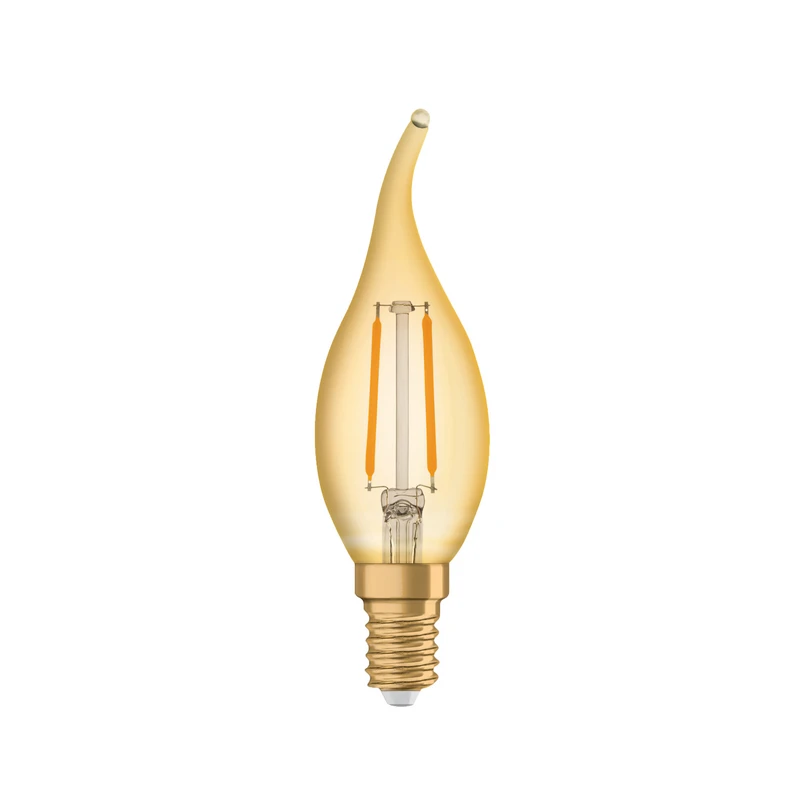Die LED-Kerzenlampe Essence Ambiente mit E14-Sockel in Windstoß-Optik und mit sichtbaren Filamenten eignet sich vor allem zum Einsatz in Kronleuchtern und Leuchten ohne Schirm. Dank ihres Designs ist sie auffallend und dekorativ, der gold-klare Glaskolben in Kombination mit der sehr warmen Lichtfarbe realisiert eine gemütliche Atmosphäre.