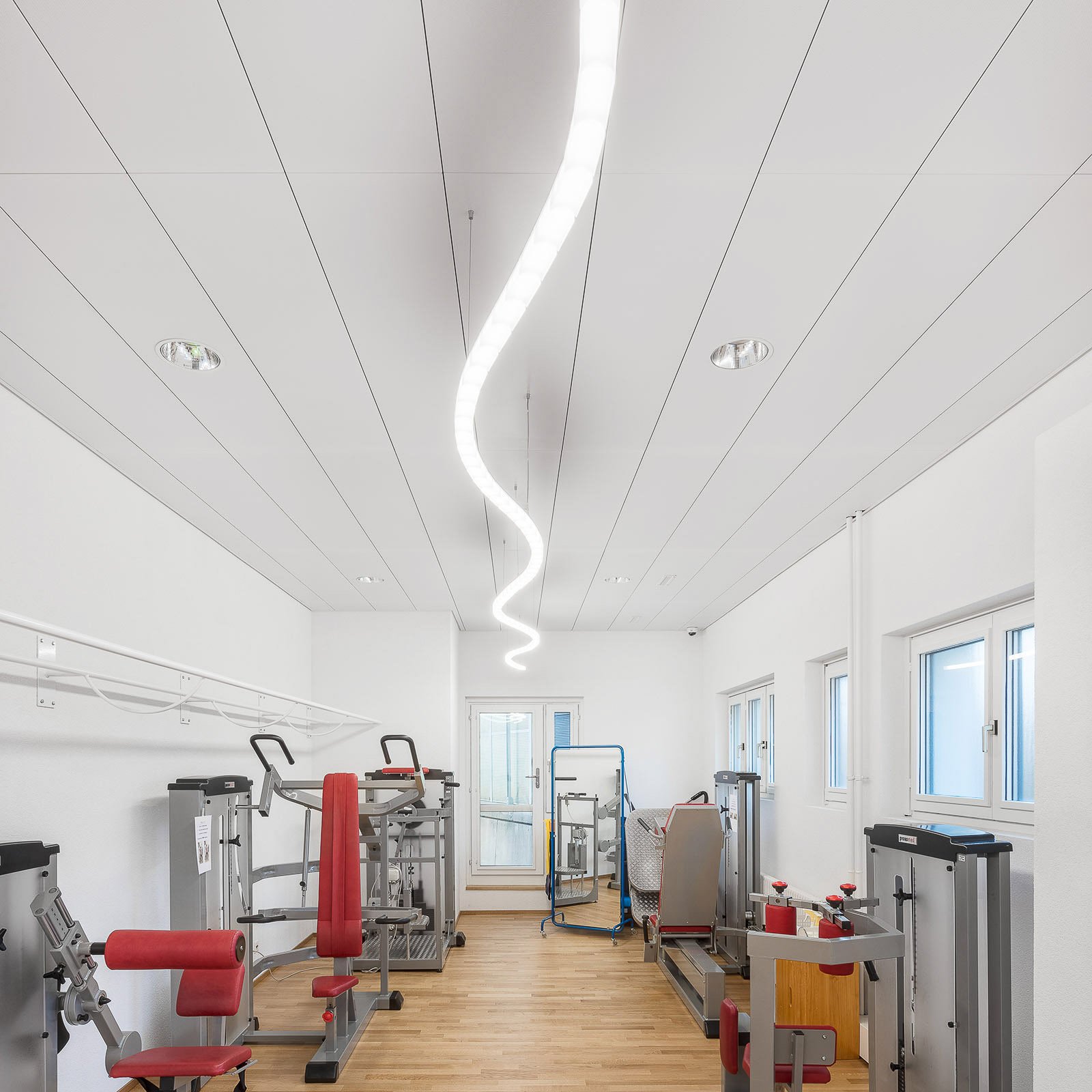 Die Lichtleiste Wiggle ermöglicht dank einzelner, gegeneinander drehbarer Elemente die Gestaltung wahlweise als kontinuierliche Linie oder als geschwungene Kurve. Wiggle LED besteht aus einem silberfarbenen Aluminiumprofil mit opalem PMMA-Diffusor und strahlt das helle Licht der verbauten LEDs direkt in den Raum. Das Betriebsgerät (DALI-dimmbar) ist bereits enthalten.