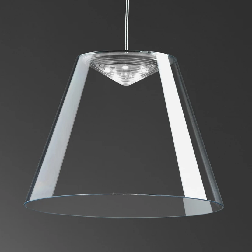 Das Design von Giovanni Lauda und Dante Donegani zeichnet sich vor allem durch Minimalismus aus. Der Polycarbonatschirm der Hängeleuchte-Dina ist einerseits ein zeitloser Lichtspender, andererseits auch ein aufsehenerregender Eyecatcher, der sich mühelos in die unterschiedlichsten Stile einbringen lässt.