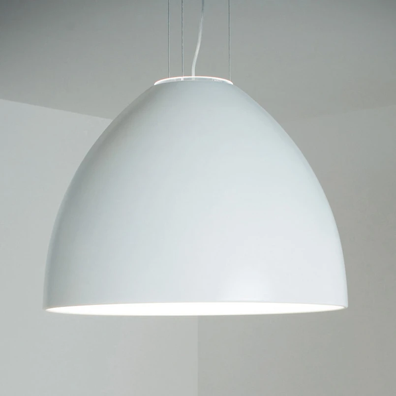 Ein halbrunder, großer Schirm ist das Hauptaugenmerk der Pendellampe Drink. An drei hauchdünnen Seilen ist Drink mit dem gleichfarbigen Baldachin verbunden. Die Innenseite des Schirms ist weiß gehalten und die metallene Hülle lässt nur das Licht nach unten abstrahlen. Zur Beleuchtung von Ess- und Küchentischen eignet sich diese Pendelleuchte besonders gut und kann auch als Allgemeinbeleuchtung gleichwertig illuminieren.