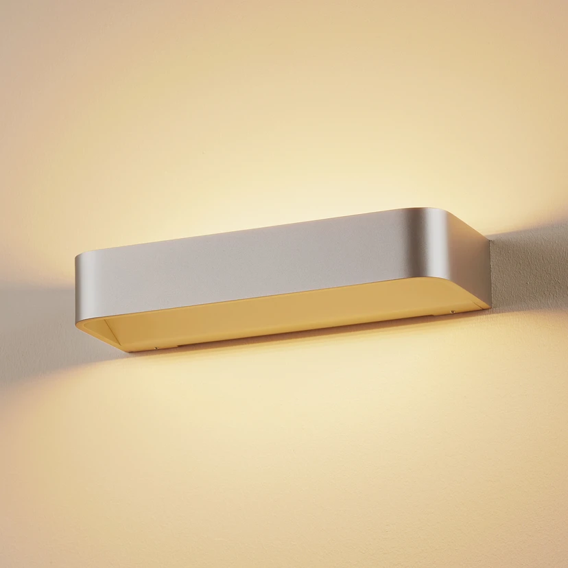 Frame kommt in einem zeitgemäßen Design aus dem Hause Rotaliana daher. Ein quaderförmiger Korpus aus Aluminium, der von oben betrachtet Ähnlichkeiten mit einem Griff aufweist, ist an der Innenseite der in den Raum hineinragenden Front mit LEDs besetzt. Das Licht fällt auf das schräge Modul im Inneren der Wandlampe und wird von dort in den Raum nach oben und unten reflektiert. Die hochwertigen LEDs sind zusätzlich mit einem hohen Farbwiedergabeindex ausgestattet. Hinzu kommt eine warmweiße Lichtfarbe, wodurch Frame insgesamt zu einer Quelle der angenehmen Grundbeleuchtung wird. Mit einem externen Dimmsystem (Phase, Push, Dali) ist es möglich, die Helligkeit zu regulieren.