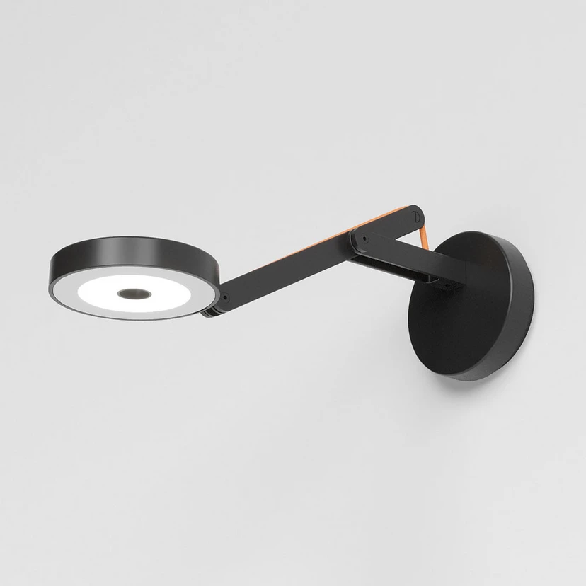 Mit den Wesensmerkmalen der String-Serie ausgestattet begeistert die LED-Wandlampe String in Wohn- und Hotelleinrichtungen, aber auch besonders als Wandleuchte im Schlafzimmer. Gerade die Dim-to-warm-Technologie verleiht dem Raum eine gemütliche Stimmung. An dem ringförmigen Leuchtenkopf ist ein Touchdimmer verbaut, der auch als Schalter der Beleuchtung fungiert. Zwei Aluprofile, verbunden über ein Scharnier, lassen in ihrer Überlagerung das textile Kabel zum Vorschein kommen. Dank des Seilzugs kann String von einer eher waagerechten Position weiter nach unten gekippt werden und ist in jedem Moment stabil in ihrer Position.