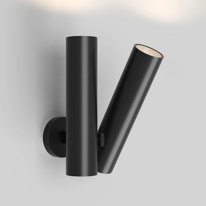 Zwei schlanke Zylinder aus Aluminium beinhalten die LED-Lichtquellen der Wandleuchte Tobu W1. Die beiden Leuchtenköpfe sind getrennt voneinander schalt- und dimmbar mittels des Schalters am unteren Ende des Zylinders. Außerdem können die Zylinder nach jeder Seite um 30° geschwenkt werden. Grundsätzlich sind sie aber dazu gedacht, Licht nach oben abzugeben und die Decke anzustrahlen, so dass der Raum insgesamt in indirektes Licht getaucht wird.