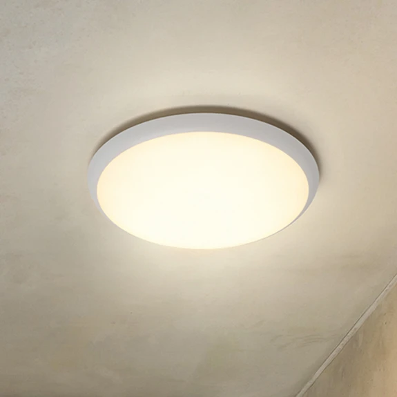 Runde, flache LED-Deckenleuchte HB 502 in Weiß zur flächigen Allgemeinbeleuchtung