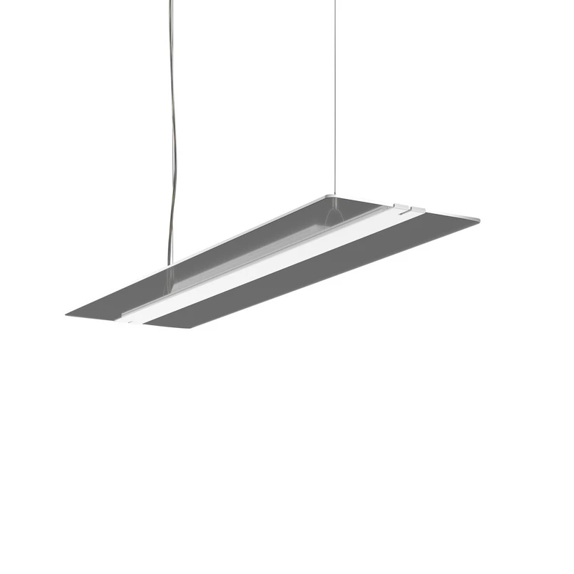 Twindot K ist eine technisch moderne LED-Pendelleuchte zur direkten Arbeitsplatzbeleuchtung und Grundbeleuchtung im Büro. Sie setzt sich aus einem Mittelsteg aus weiß pulverbeschichtetem Aluminium-Strangpressprofil und einem rechteckigen Lightguide aus UV-stabilem, klaren Acryl zusammen. Letzteres sorgt dank der Twindot-Prismatik für ein angenehm sanftes Licht mit weichen Schatten und minimierter Blendwirkung (geeignet für Bildschirmarbeitsplätze gemäß DIN EN 12464-1). Die Lichtverteilung erfolgt zu 55 % direkt und zu 45 % indirekt.