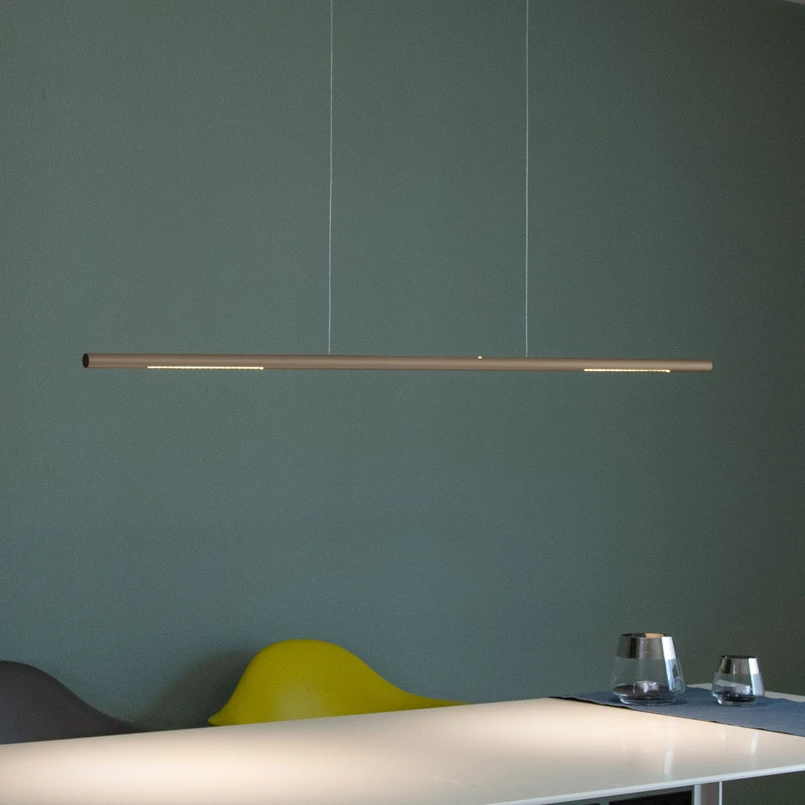 Durch sanftes Schieben oder Ziehen der Leuchte mit den Händen kann die Abhängung jederzeit verändert werden, auch wenn die Palito Linea bereits montiert ist. Via Phasenan-/abschnitt ist es zudem möglich, sie extern zu dimmen und so noch besser an die eignen Anforderungen anzupassen.