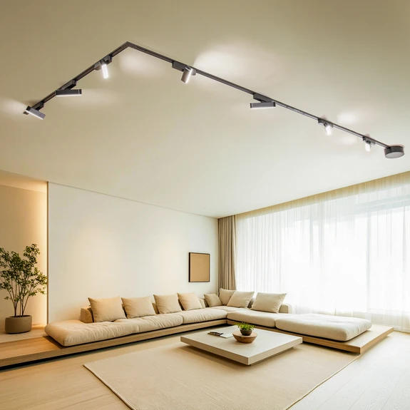 Die LED-Leuchten des Systems sind dimmbar und bieten eine steuerbare Lichtfarbe (CCT), die von warmweiß bis hin zu Tageslicht reicht. Ein herausragendes Merkmal des Lumaro-Schienenbeleuchtungssystems ist seine hohe Flexibilität. Die Leuchten können entlang der Schienen beliebig positioniert werden, sodass die Beleuchtung individuell angepasst werden kann. Darüber hinaus kann das System mit zusätzlichen Schienen- und Lichtelementen erweitert werden, was unzählige Gestaltungsmöglichkeiten und maximale Flexibilität bietet. Die LED-Leuchten sind um 90° drehbar, was eine präzise Ausrichtung des Lichts ermöglicht und somit für eine optimale Ausleuchtung sorgt.