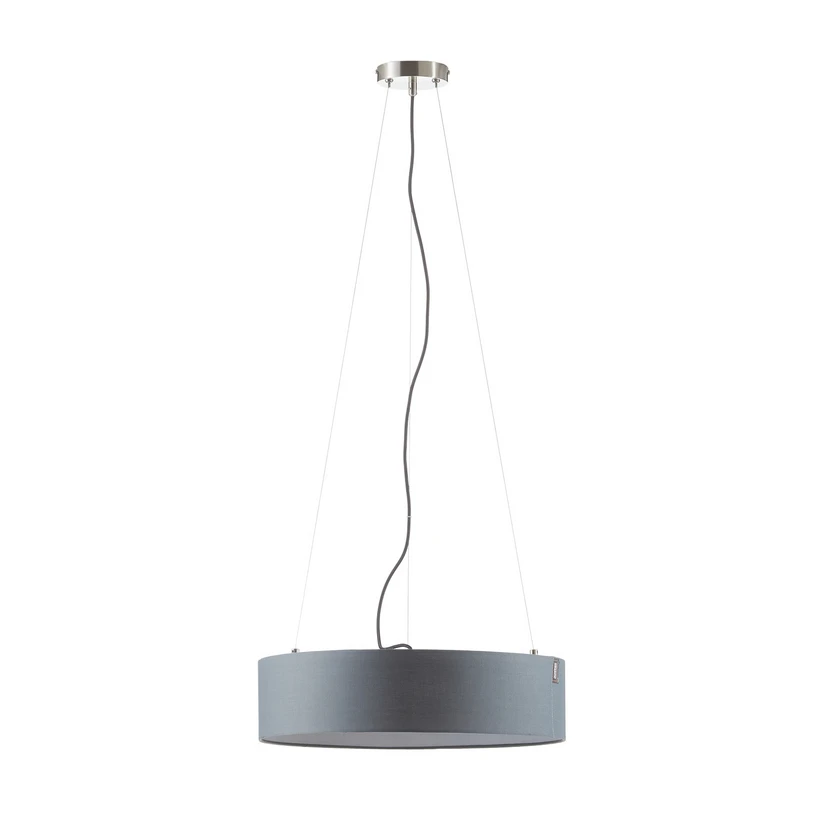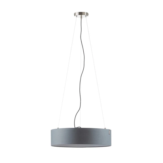 Die edle Pendelleuchte Pina sorgt durch ihren zart-gemusterten Stoffschirm für komfortables, gemütliches Licht. Durch die matte Diffusorplatte, die das Innenleben der Leuchte von unten her abdeckt, sorgt Pina für eine blendfreie, gleichmäßige Beleuchtung. Der Schirm wird durch drei feine Seile mit der nickel-matten Deckenbefestigung verbunden. Mit ihrer zweieinhalb Meter langen Abhängung ist das moderne Stück besonders für hohe Zimmerdecken geeignet. Für die vier frei wählbaren Leuchtmittel wird warmweißes Licht empfohlen, welches die behagliche Atmosphäre zusätzlich unterstreicht. Dadurch ist Pina sowohl als Esszimmerleuchte, als auch im Wohn- und Schlafzimmer verlässlich prädestiniert.