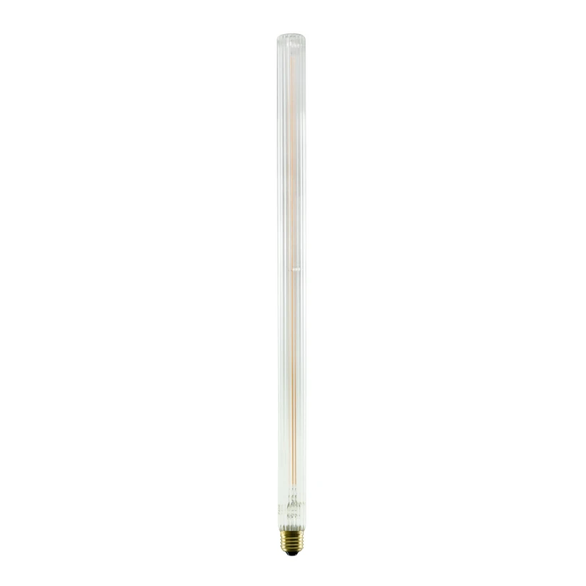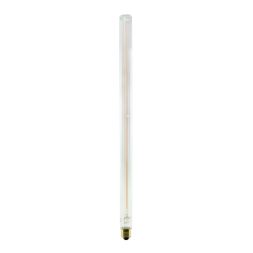In langer Röhrenform aus transparentem Glas mit feiner Rillenstruktur und mit LED-Filamenten, die Glühfäden zum Verwechseln ähnlich sehen, wurde diese LED-Lampe aus der Serie Soft Line von SEGULA gearbeitet. Die extra warme Lichtfarbe macht die LED-Lampe zum idealen Leuchtmittel für dekorative Beleuchtungsaufgaben in schirmlosen Leuchten. Die Helligkeit kann mit den meisten handelsüblichen Dimmern gedimmt werden.
