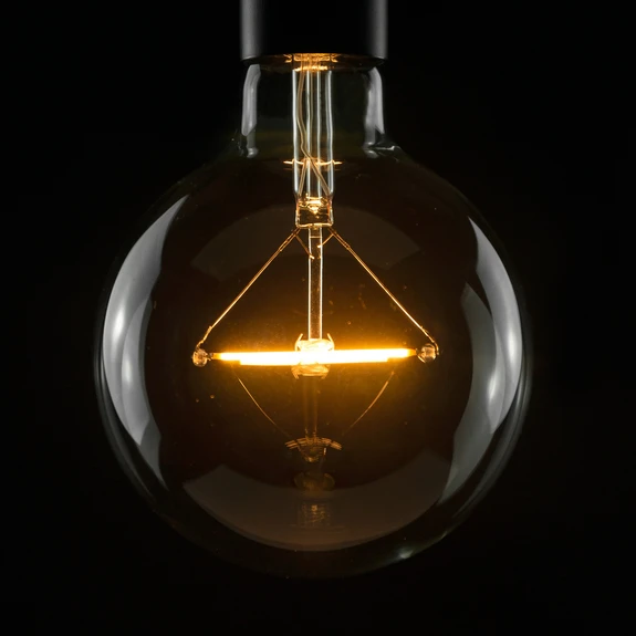 In dieser LED-Globelampe für E27-Fassungen stehen die modern gestalteten Filamente sprichwörtlich im Mittelpunkt. Durch das transparente Glas kommen sie sehr gut zur Geltung und geben im Betrieb ein angenehm warmweißes Licht ab. Zudem lässt sich die Lichtstärke extern dimmen.
