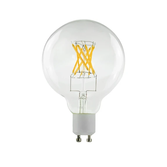 Mit dieser LED-Globelampe mit GU10-Sockel lassen sich jetzt auch in Leuchten mit GU10-Fassung neben den üblichen Reflektoren auch dekorative Lampen einsetzen, wie diese LED-Globelampe mit klarem Glas und LED-Filamenten. Die Globelampe strahlt warmweißes Licht aus und kann mittels externem Dimmer auch in ihrer Helligkeit reguliert werden.
