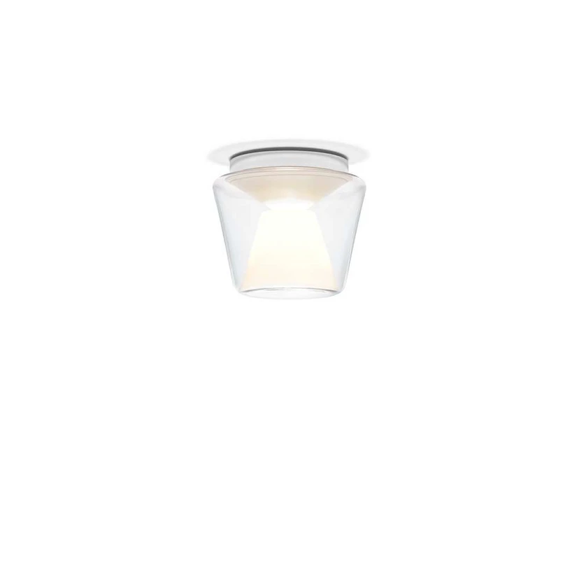 Die Designerleuchte Annex von serien.lighting kann sowohl mit einem eleganten Äußeren als auch mit einer ausgeklügelten Lichtwirkung aufwarten. Sehr elegant mit ein wenig Understatement kommt der konisch geformte, mundgeblasene Glaskörper daher. Dieser klare, äußere Schirm wird von einem inneren, ebenfalls konischen Schirm aus opalem Acryl ergänzt. Der opale Schirm ist wesentlich für die Lichtlenkung verantwortlich: Einerseits wird bei Annex Licht nach unten abgeben, durch den opalen Schirm wird ein Teil des Lichts aber auch seitlich gestreut, so dass eine sanfte Raumausleuchtung gegeben ist.
