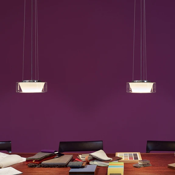 Komplettiert wird der Schirm durch einen konischen Innenreflektor aus opalweißem Polycarbonat und einen Diffusor unterhalb des LEDs. So wird seitlich und nach unten eine angenehme, homogene Beleuchtung geboten. Das warmweiße Licht überzeugt mit ausgezeichneter Farbwiedergabe und kann bei Bedarf extern via Triac gedimmt werden.