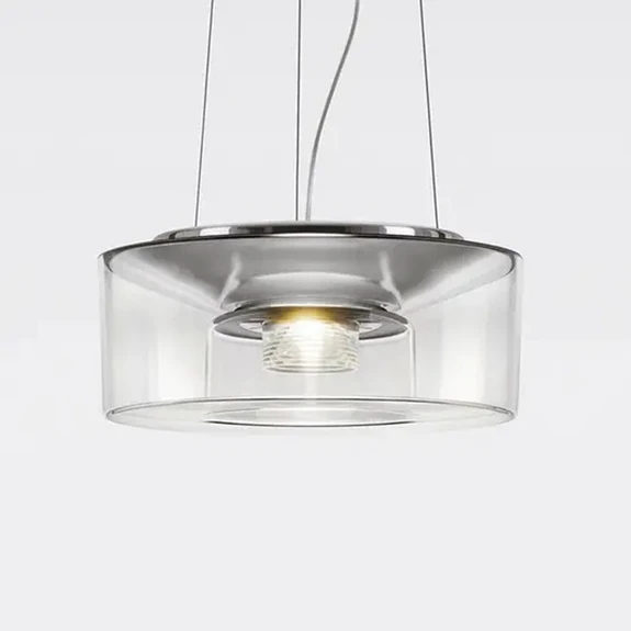 Curling ist eine LED-Pendelleuchte, bei der sich eine zeitlos-elegante Form und fortschrittliche LED-Technik zu einem stimmigen Lichtspender vereinen. Der transparente Schirm in flacher Zylinderform besteht aus Acryl und beherbergt eine LED-Lichtquelle mit poliertem Aluminiumgehäuse, deren Licht die Farben der erhellten Gegenstände natürlich darstellt. Ein magnetisch befestigter optischer Einsatz mit speziellem Schliff sorgt für eine sanfte, direkte Lichtabgabe nach unten. Schlanke Stahlseile dienen zur Befestigung am Baldachin aus glänzendem Aluminium. Das Einsatzgebiet der Leuchte reicht von privaten Wohnräumen über gastronomische Objekte bis hin zu Eingangs- und Empfangsräumen.