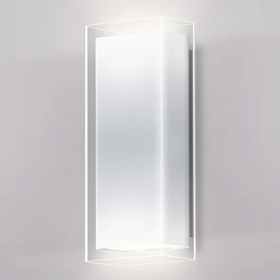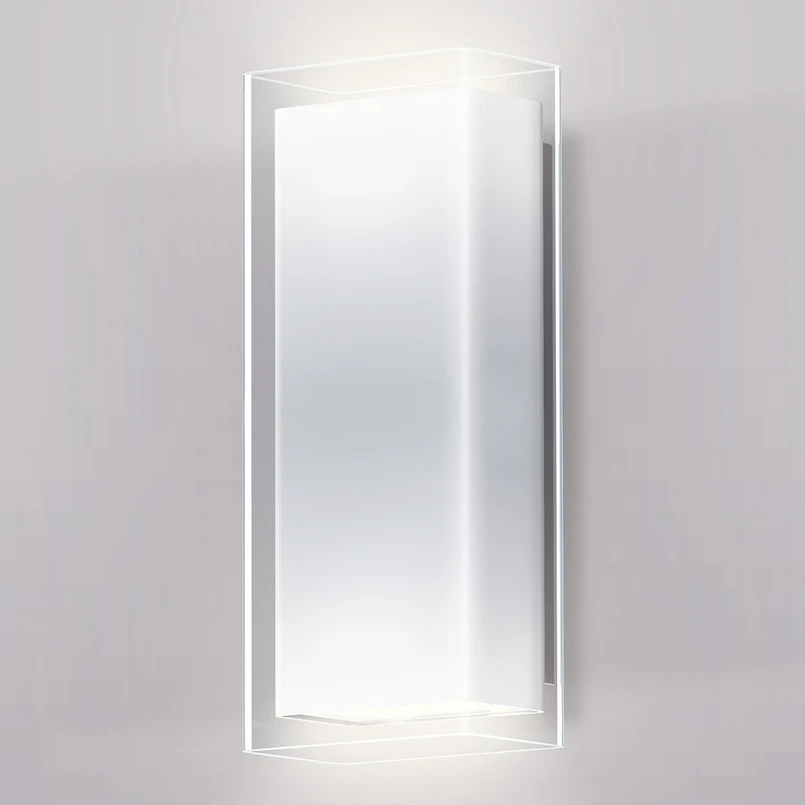 Minimalistisches Design zeichnet die LED-Wandleuchte Crib Wall von serien.lighting aus. Aus insgesamt zwei Schirmen besteht die sehr architektonisch wirkende Leuchte. Der äußere Schirm aus Borosilikatglas ist kubisch mit leicht abgerundeten Ecken und Kanten gestaltet. Der innenliegende Schirm beeinflusst die Lichtwirkung, wobei aber hauptsächlich Licht nach oben und unten entweichen kann. Mit einem entsprechenden Dimmer (Phasenabschnittdimmer, exkl.) kann die Wandleuchte auch gedimmt werden.