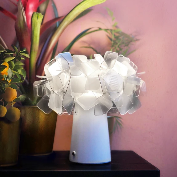 Die LED-Tischleuchte Clizia ist ein wahrer Blickfang und bereichert zahlreiche Wohn- und Aufenthaltsbereiche. Ob zur dekorativen Akzentbeleuchtung in einem Hotel oder auch Restaurant oder zu stimmungsvollen Beleuchtung im heimischen Wohnzimmer - Clizia ist absolut flexibel und dabei stets elegant. Sie wird mit einem Akku betrieben, wodurch sie mühelos den Standort wechseln kann und bei geringer Lichtintensität bis zu 60 Stunden leuchtet.