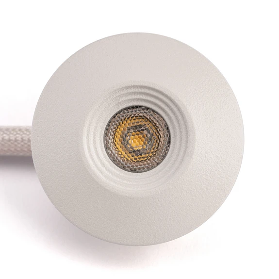 Die LED-Deckeneinbauleuchte MiniOne Fixed eignet sich ideal zum Kreieren dekorativer Lichtakzente oder zur eleganten Zusatzbeleuchtung in trockenen wie feuchten Innenräumen sowie Außenbereichen. Bis zu sechs Exemplare können je nach Betriebsgerät gemeinsam versorgt werden. Im runden Aluminiumgehäuse ist eine LED verbaut, deren warmweißes Licht in mittelbreitem Winkel emittiert wird. Die Montage ist entweder als Einbauleuchte oder mit dem entsprechenden Aufbaurahmen (siehe Zubehör) als Anbauleuchte möglich.
