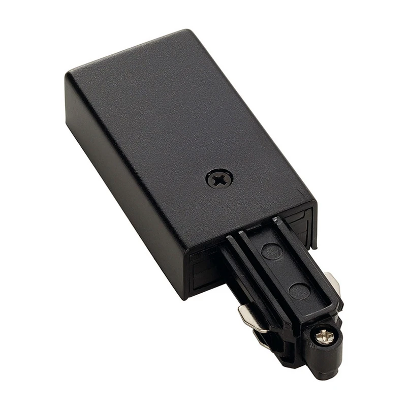 Dieser Einspeiser mit Erdleiter links eignet sich für das Hochvolt 1-Phasen-Schienensystem von SLV. Die schwarze Ausführung harmoniert optisch in Kombination mit schwarzen Schienen.
