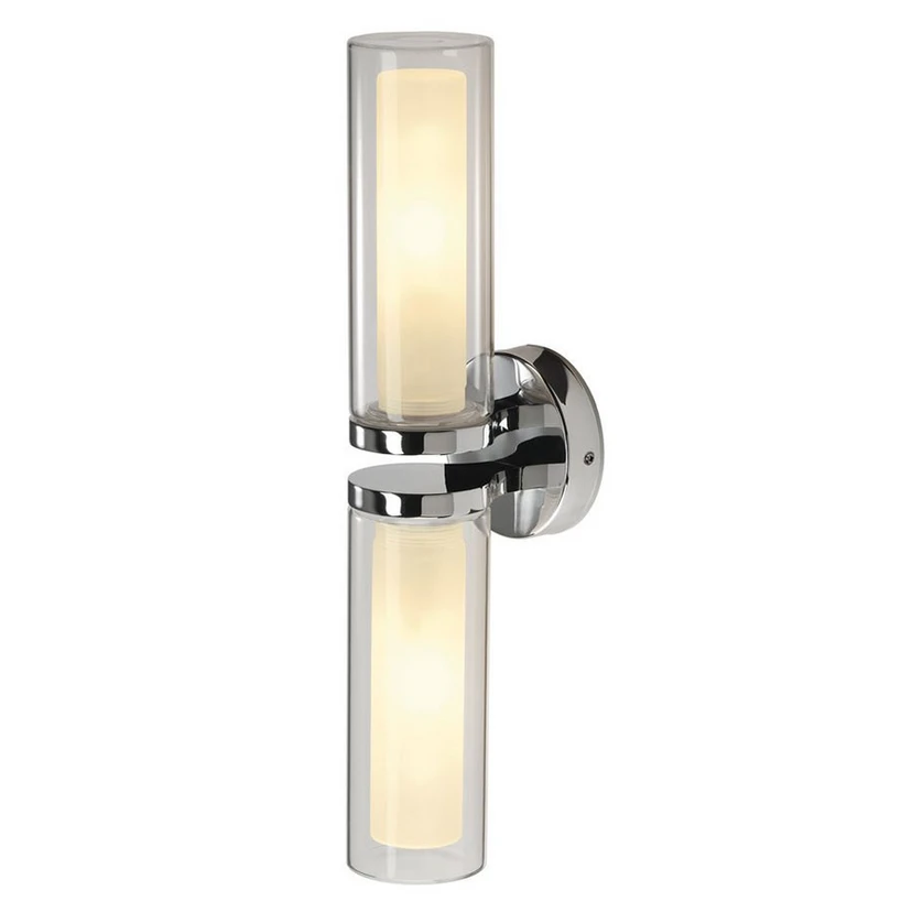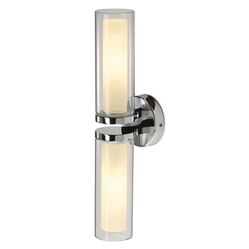 Die Wandleuchte WL 106 verfügt über zwei Glasschirme, die je nach Anbringung nach oben und unten oder nach links und rechts ausgerichtet werden können. So kann die Wandlampe beispielsweise direkt über oder neben einem Spiegel im Badezimmer angebracht werden. Der Aufbau der Schirme mit jeweils einer klaren Außenhülle und einer opalen Innenlage garantiert ein homogenes, blendfreies Licht. Die chromfarbene Wandhalterung verleiht WL 106 einen eleganten Touch.