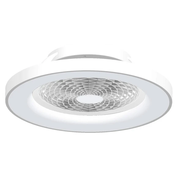 Der Ventilator Tibet wirkt schlicht und zugleich elegant. Zentral befindet sich der Rotor hinter einem Schutzgitter. Außen schließt sich die ringförmige LED-Leuchte mit matter Acryl-Abdeckung an. Als Abschluss dient ein seitlich umlaufendes Dekor-Band. Nicht nur optisch, sondern auch funktional liegt Tibet dank freier Wahl der Einstellungen von Leuchte und Ventilator, die sich per Fernbedienung oder App vornehmen lassen, absolut auf der Höhe der Zeit.