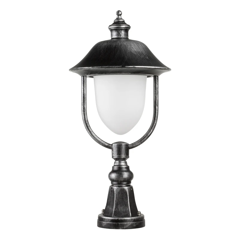 Das antike Design der Sockelleuchte 1156/1157 spiegelt sich nicht nur in der Form-, sondern auch in der Farbgebung wider. Das Gehäuse aus Aluminium-Druckguss ist mit einem schwarz-metallischen Finish veredelt und wird vom abstrahlenden Licht des opalen Leuchtenglases eindrucksvoll in Szene gesetzt. Die ästhetische Form des Glases ist ein weiterer Pluspunkt der Sockelleuchte 1156/1157, die auf jedem Grundstück für eine adäquate Umgebungsausleuchtung sorgt.
