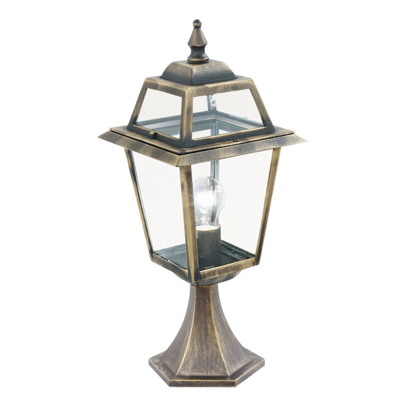 Stolperfallen gibt es auf einem Grundstück viele, wie z. B. Beeteinfassungen, kleine Mauern, Treppenauf- und -abgänge. Mit New Orleans, der in antiker Laternenform gearbeiteten Sockelleuchte aus haltbarem Aluminium mit stilvollem schwarz-goldenem Finish, wird die Umgebung hell und sicher ausgeleuchtet. Die einzusetzende Lampe verströmt ihr Licht ungehindert durch das klare Glas. Mit Spritzwasserschutz (IP44) ausgestattet, hält New Orleans auch widrigen Witterungsumständen stand.