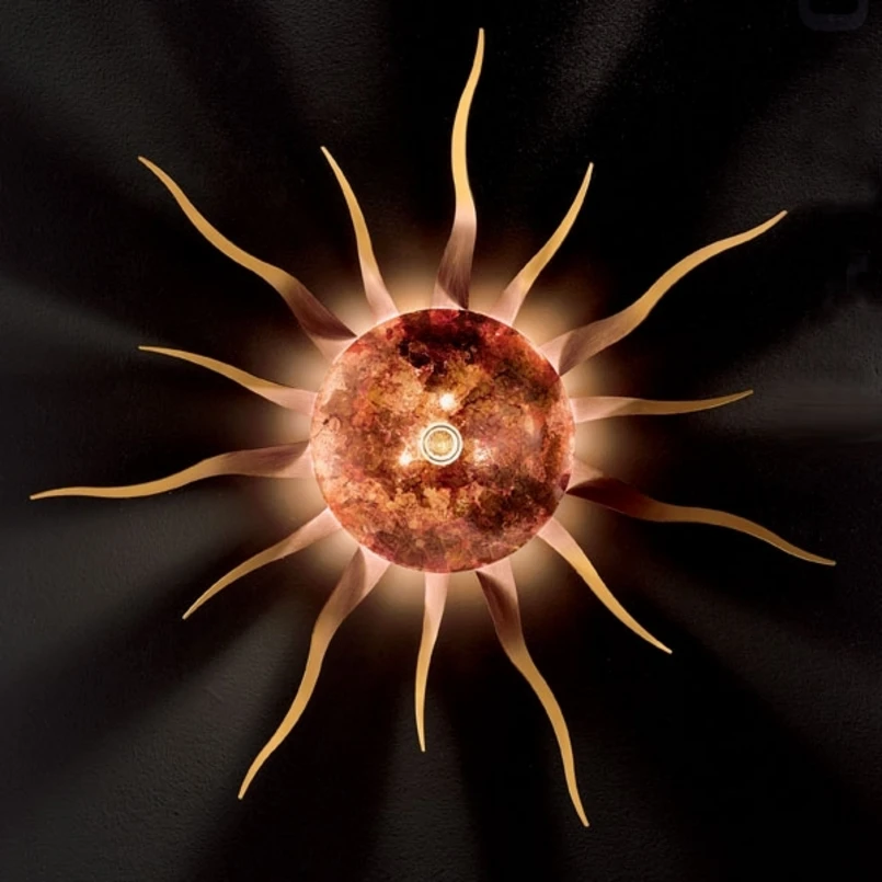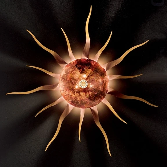 Diese in edlem Gold und Kupferrot strahlende Sonne erleuchtet jede Räumlichkeit auf eindrucksvolle Weise. Mit ihrem außergewöhnlich kunstvollem Design sorgt sie für ein besonderes Flair und gibt stimmungsvolles Licht ab. Durch traditionelle Verarbeitung in deutsch-italienischen Werkstätten wird die gleichbleibend hohe Qualität dieser exklusiven Wand- oder Deckenbeleuchtung gesichert.