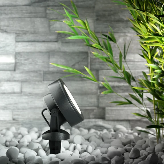 Gerade neben Wegen auf dem Grundstück überzeugt der Erdspießstrahler Tommy als effektive und bedarfsgerecht justierbare Lichtquelle. Der ausrichtbare Leuchtenkopf ist mit einer LED-Lampe bestückt, deren Farbtemperatur auf 3.000 K, 4.000 K oder 6.500 K eingestellt werden kann. Das Licht wird durch einen gefrosteten Polycarbonat-Diffusor ausgestrahlt, der in Kombination mit dem schwarzen Gießharz-Gehäuse samt Silikon-Dichtungen eine widerstandsfähige und langlebige Leuchte ergibt.