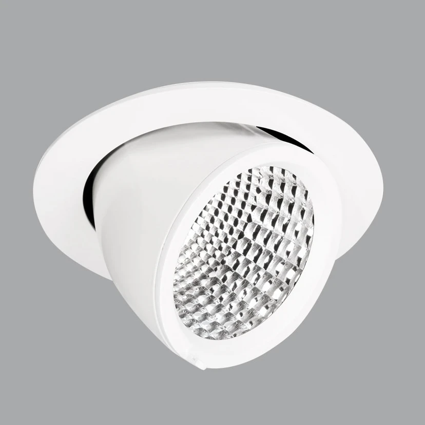 Einbauleuchten für die Decke machen Privaträume durch eine gezielte Fokussierung bestimmter Bereiche wohnlicher und ermöglichen in der Shoplandschaft die gekonnte Inszenierung von z. B. Aktionsware. EB433 ist mit einem Spot Reflektor ausgerüstet, der dank des innovativen Schwenkmechanismus um 60° (-15°bis 45°) nach innen und außen geschwenkt werden kann. Auch die Drehung um bis zu 355° ist möglich. LED-Treiber enthalten.