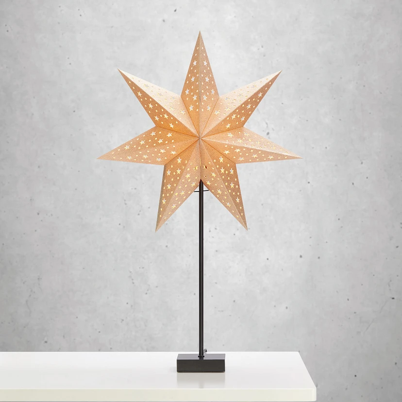 Egal, wo der Stand-Stern Solvalla seinen Platz findet, ob auf einem Tischchen im Wohnzimmer, einer Kommode im Schlafraum oder vor einem Fenster - er wird überall Aufmerksamkeit erregen und beim Betrachter ein Gefühl der Vorfreude auf das Weihnachtsfest aufkommen lassen. Mit Kabelschalter ausgestattet.