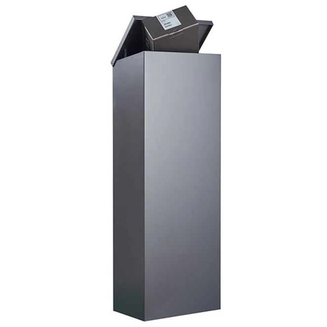 Der Paketbriefkasten Allux 600-B besticht durch seine ununterbrochene Front - die Klappe zum Einwurf der Pakete befindet sich auf der Oberseite des Briefkastens. Eine weitere Besonderheit ist die Entnahmetür auf der Rückseite des Briefkastens. Dieses Detail ermöglicht es, den Briefkasten als Teil der Grundstücksmauer oder als Bestandteil des Eingangsbereiches zu integrieren. Es ermöglicht, dass die Post von innen entnommen werden kann, somit entfällt bei schlechter Witterung der lästige Gang zum Briefkasten.