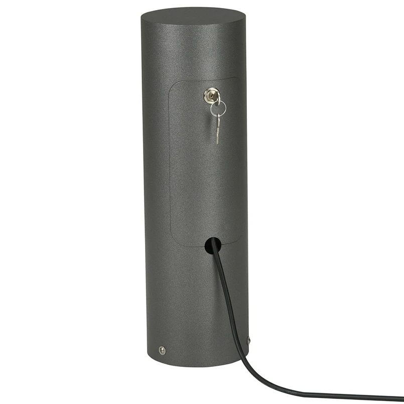 Diese zylindrische Steckdosensäule besteht aus anthrazitgrauem Aluminium und ist mit einer abschließbaren Tür ausgestattet. Ideal geeignet für die Verwendung in privaten und öffentlichen Außenanlagen.