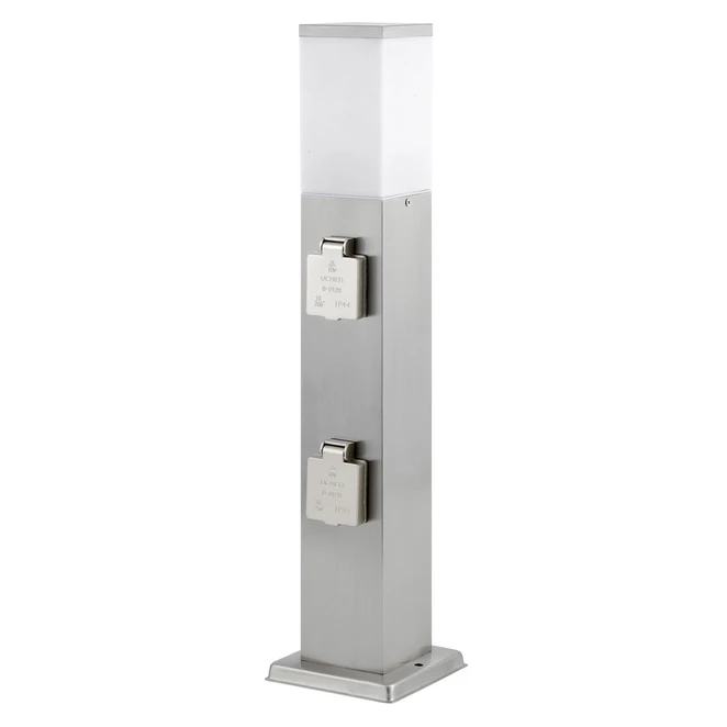 Außensteckdosensäule Ledar aus Edelstahl mit einer Lichtquelle und vier Steckdosen