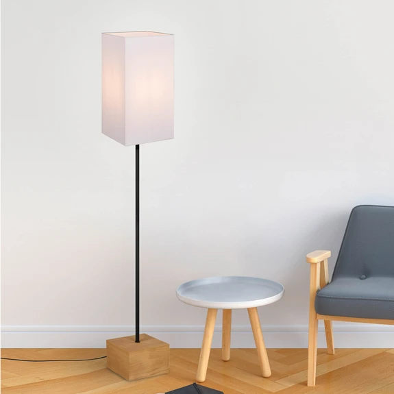 Stehlampe Woody, Naturholz und Textil, Quaderform