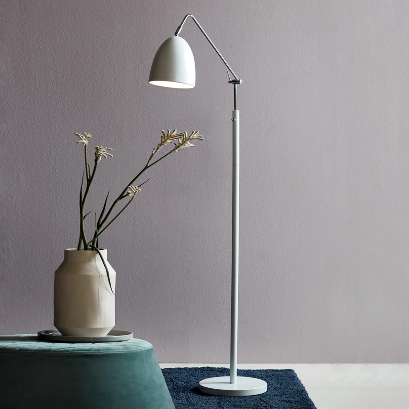 Die zierliche Stehleuchte Alexander mit dem schlanken Gestell und dem schön geformten Schirm ist perfekt durchdacht und vereint ein schönes, skandinavisches Design mit hoher Funktionalität. Sie lässt sich durch Gelenke beliebig ausrichten, so dass sie zur perfekten Leselampe für viele Wohnräume wird. Fuß, Schirm und der überwiegende Teil des Gestells aus Metall wurden seidenmatt lackiert, lediglich der obere Gestellbereich wurde verchromt und stellt einen filigranen Kontrast dar. Das Gelenk mit Feststellhebel ermöglicht die Neigung des Leuchtenarmes, um den Schirm und damit den Lichtkegel gezielt auszurichten. Zur komfortablen Bedienung direkt an der Leuchte wurde der KIippschalter an gut erreichbarer Stelle in das Gestell integriert.